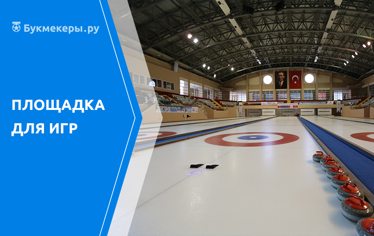 - Соревнуются на ледяной прямоугольной поверхности в виде ленты или листа. Ширина поля в пределах 5 м, что позволяет на одном стадионе размещать более одной площадки и играть, соответственно, могут сразу 3-4 команды. В отличие от других видов спорта на льду игроки состязаются не на коньках, а в специальной обуви с гладкой подошвой для скольжения.