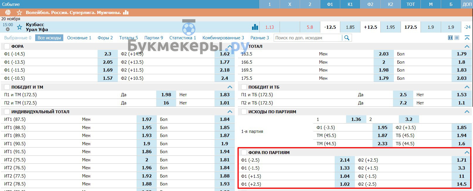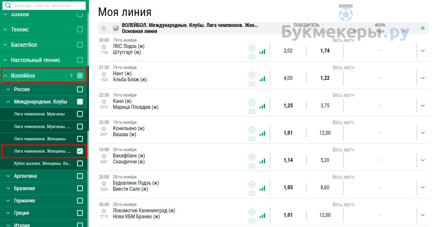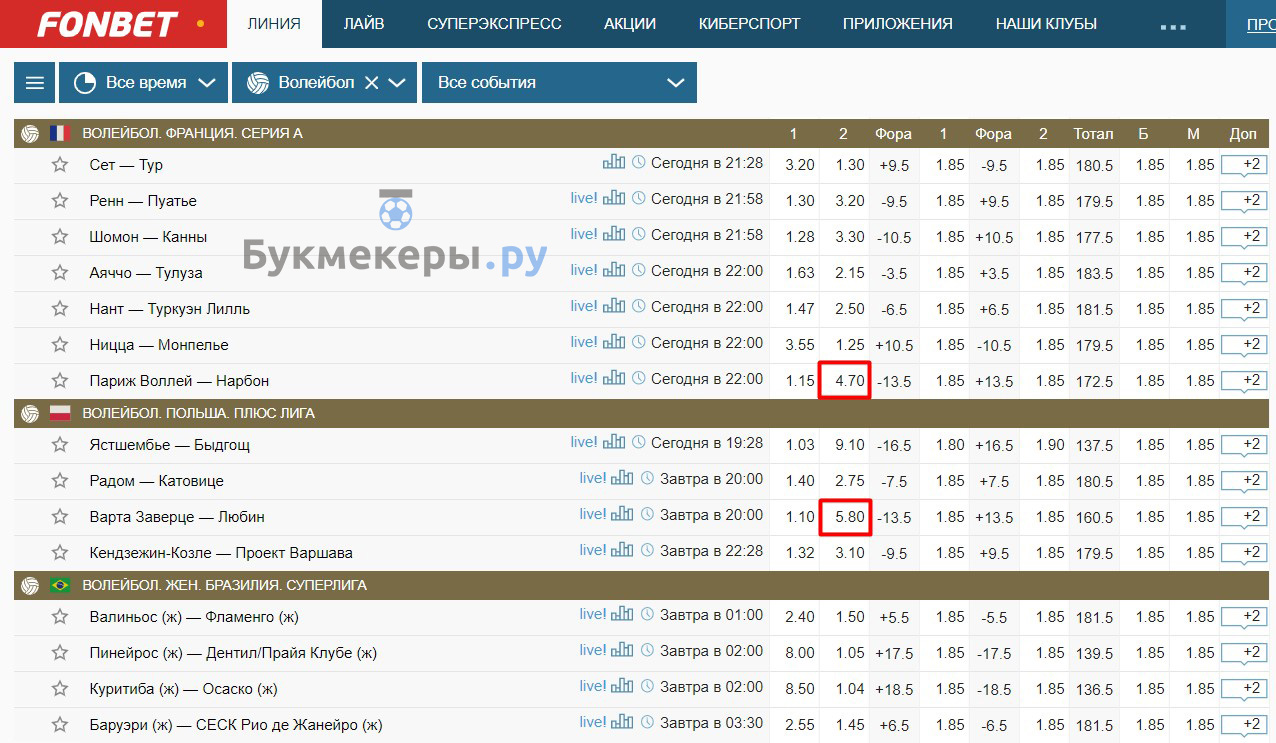 Букмекерские конторы, принимающие ставки на события в волейбольных поединках.