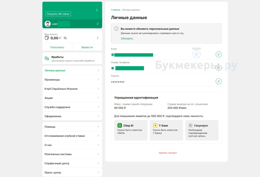 Полная проверка является платной услугой и требует личного посещения пункта приема ставок (или салона “Связной”, пункт обслуживания Contact) с российским паспортом. Стоимость верификации варьируется от 150 до 300 рублей. После прохождения процедуры игрок может держать на игровом балансе неограниченную сумму, а лимит оборота средств за один месяц возрастает до 595 тысяч рублей.