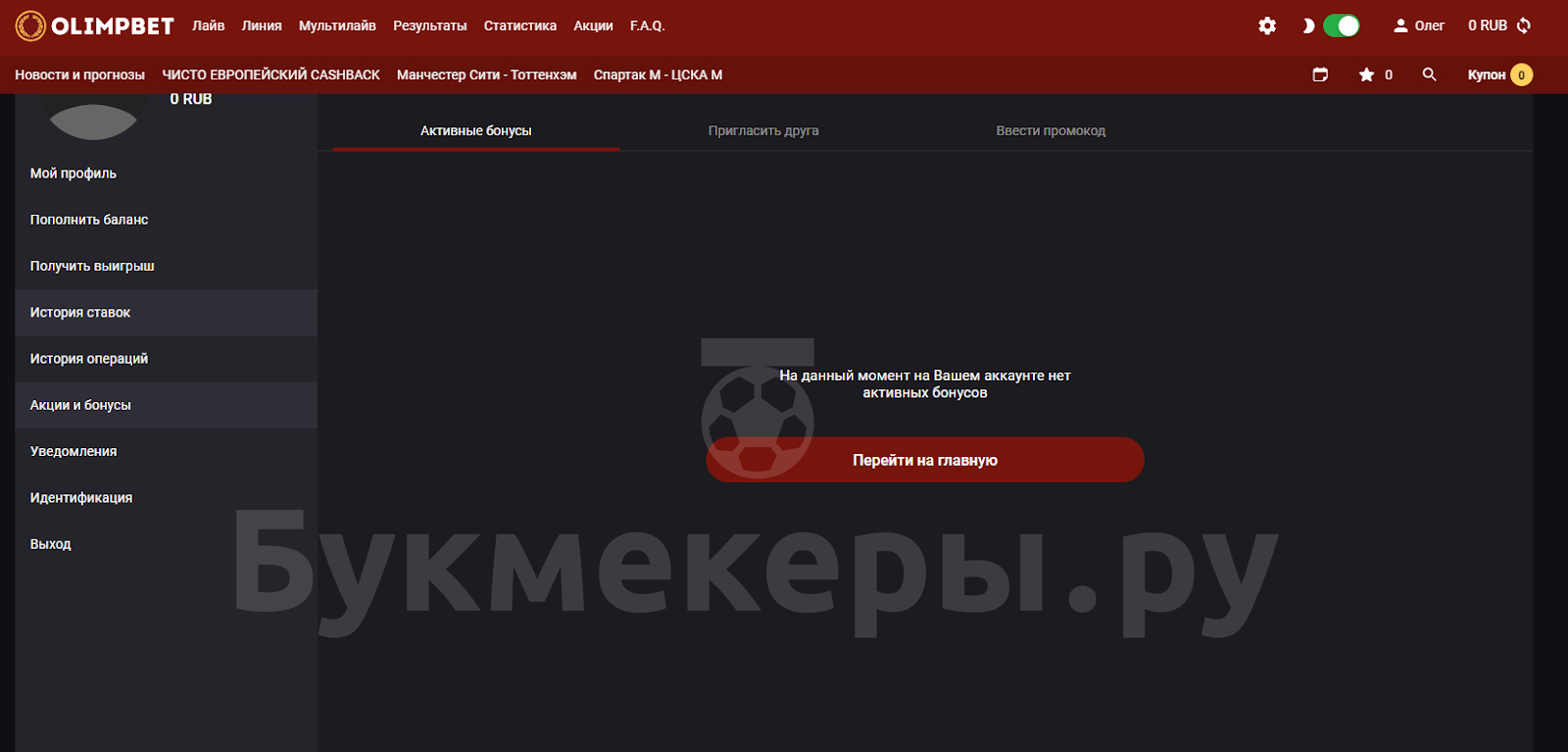 Войти в личный кабинет на ОлимпБет
