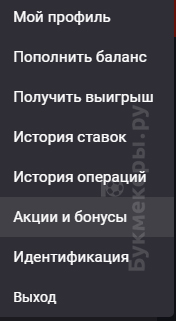 - В разделе Акции и бонусы полная информация о доступных бонусных предложениях для клиента беттинговой компании. Здесь же есть вкладка, чтобы отправить приглашение другу в виде персонального промокода. После пополнения новым клиентом счета минимум на 1 000 рублей, он и человек, пригласивший его, получат по 500 рублей на своей счет. Еще одна вкладка в этом разделе отведена под введение промокода для участия в различных бонусных акциях.