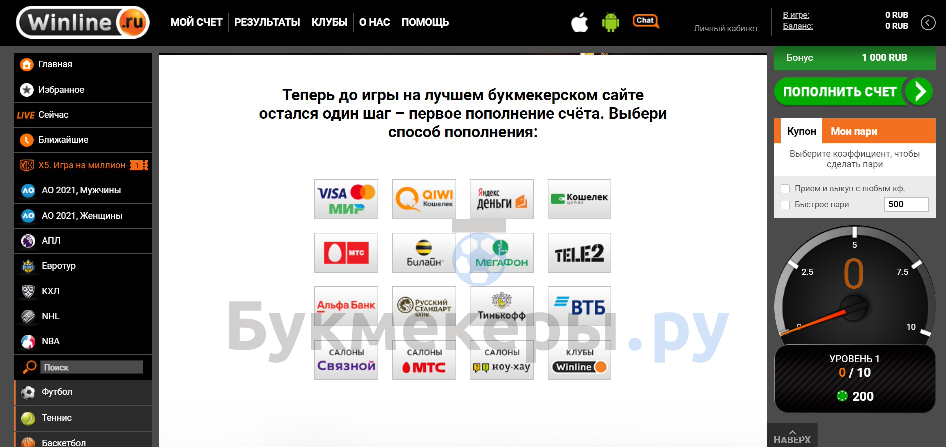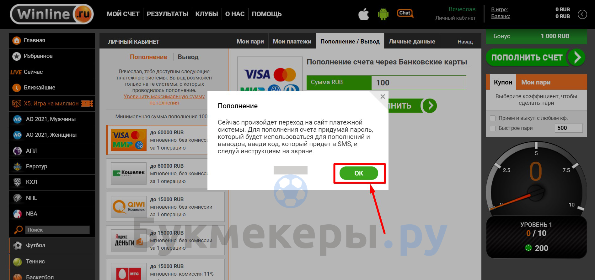 Какие есть способы пополнить игровой счет БК Винлайн?