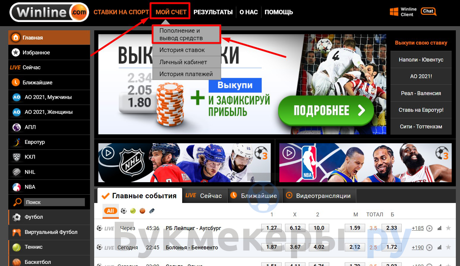 Пополнить счет в букмекерской конторе Винлайн можно через ряд площадок:
