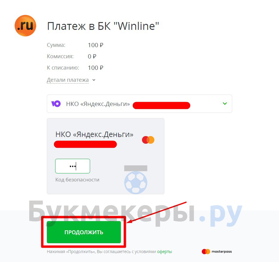 - введите сумму — минимальный депозит составляет 100 рублей;