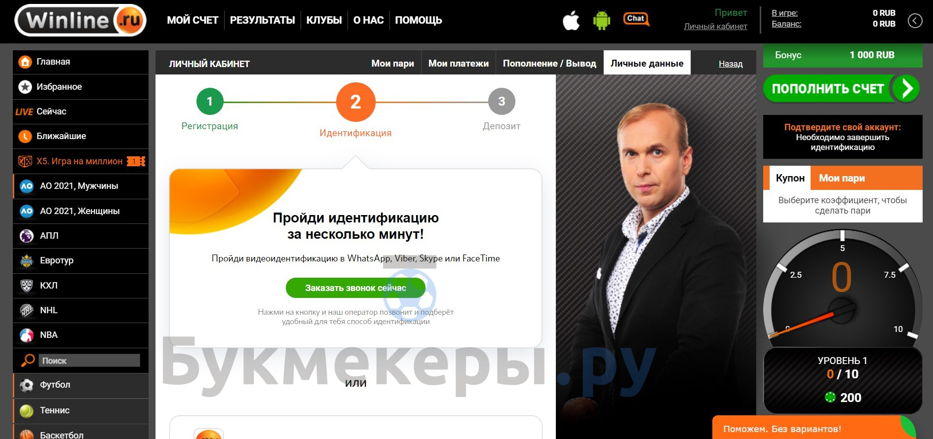 Для идентификации в «Винлайне» есть два способа. Во-первых, можно пообщаться онлайн с представителем компании и показать ему документы через мессенджеры, которые подтвердят вашу личность. Во-вторых, можно самостоятельно прийти в один из стационарных пунктов приёма ставок «Винлайна».