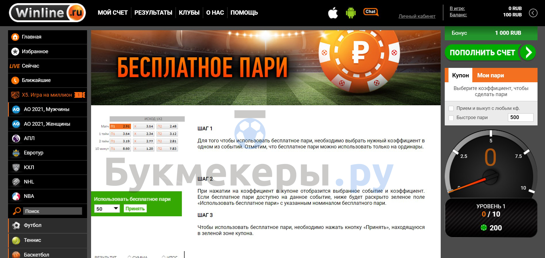 - Бонусная программа, разнообразные акции и возможность делать ставки бесплатно за счет фрибетов;