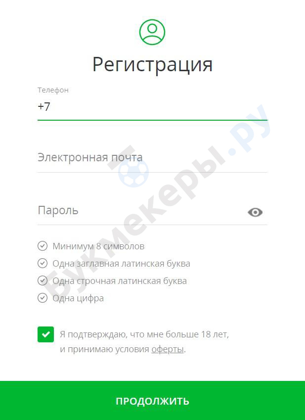 Регистрация на официальном сайте букмекера
